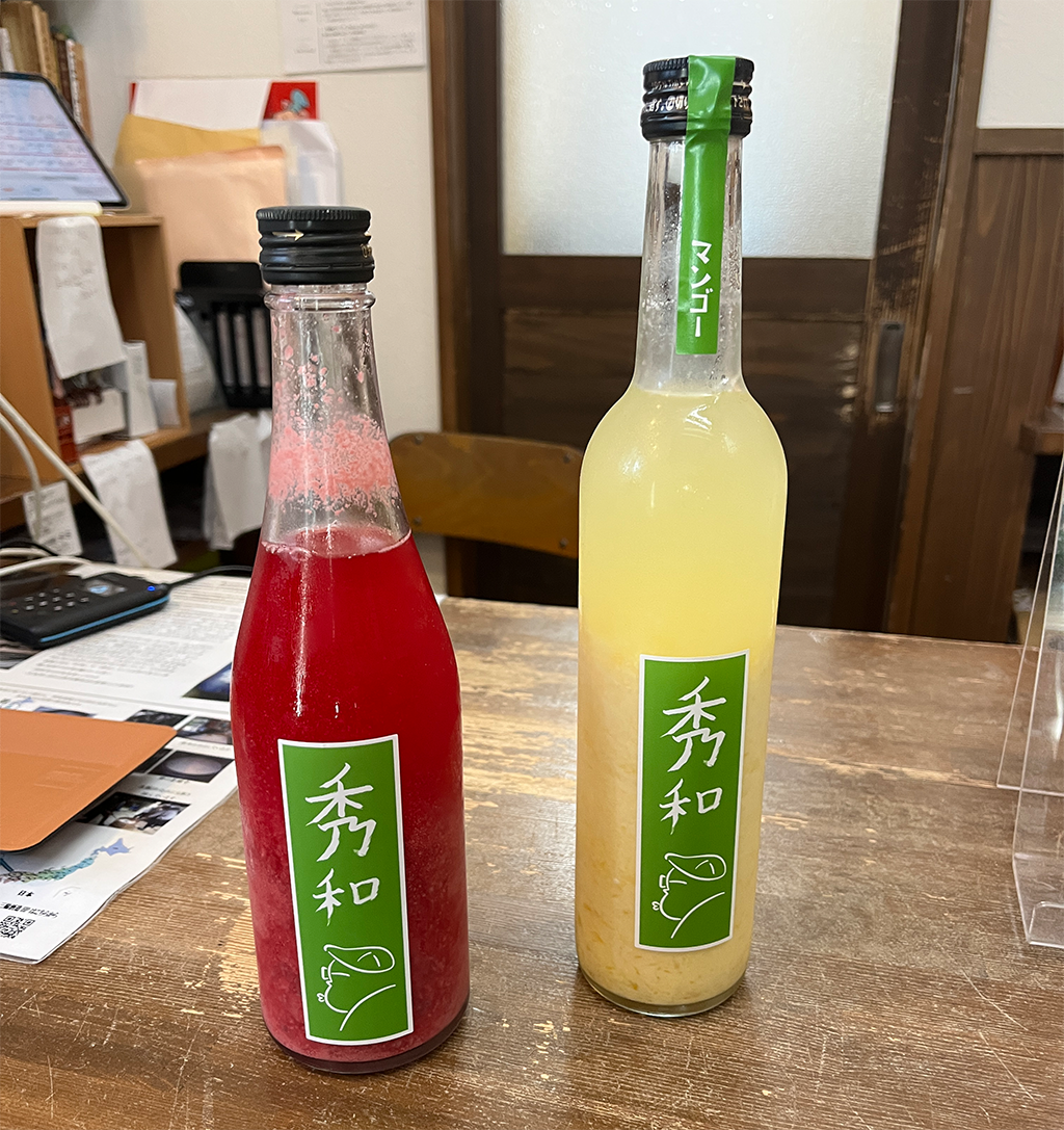 夜の会食では、パトナー企業から輸入した台南産マンゴーを使って La Jomon 様が作った「マンゴー日本酒」を飲んでいただきました。
